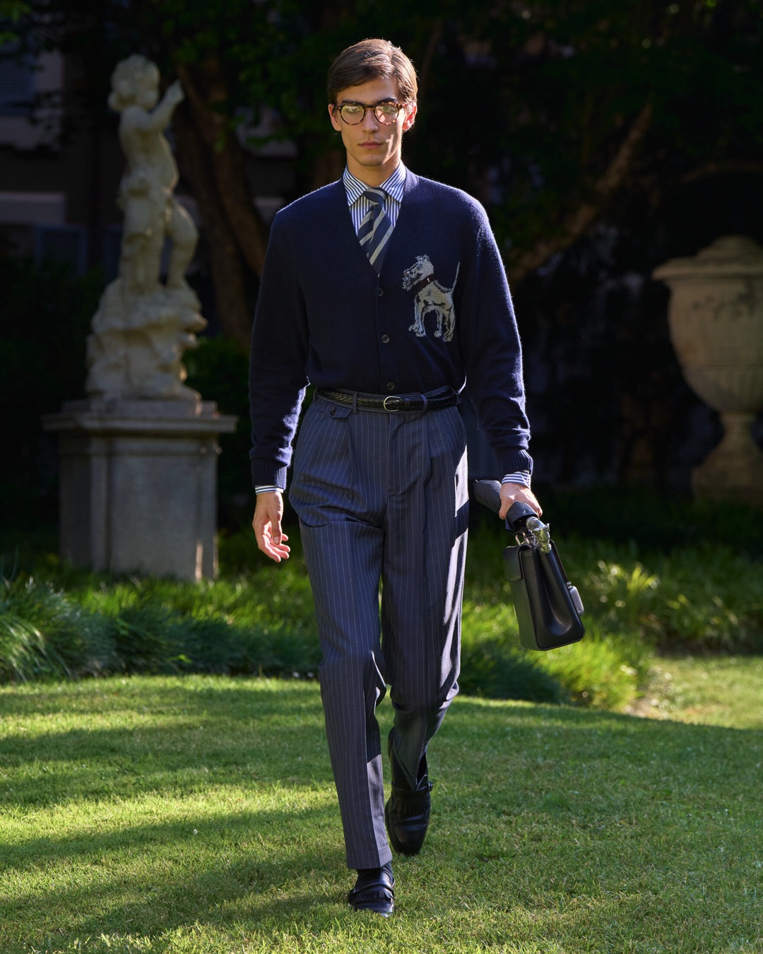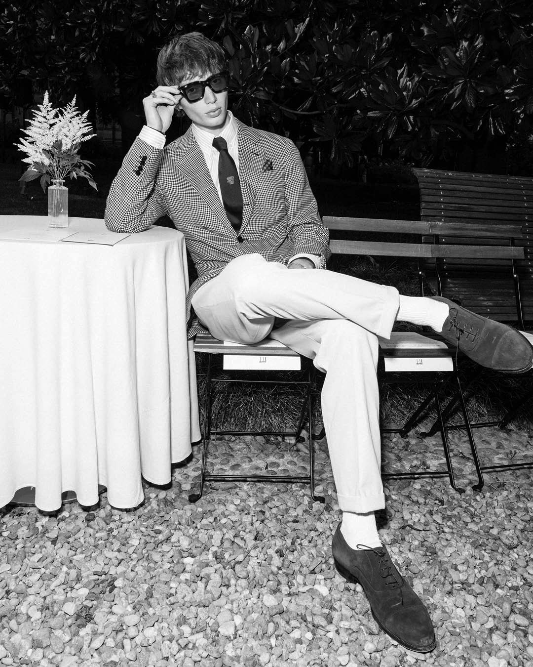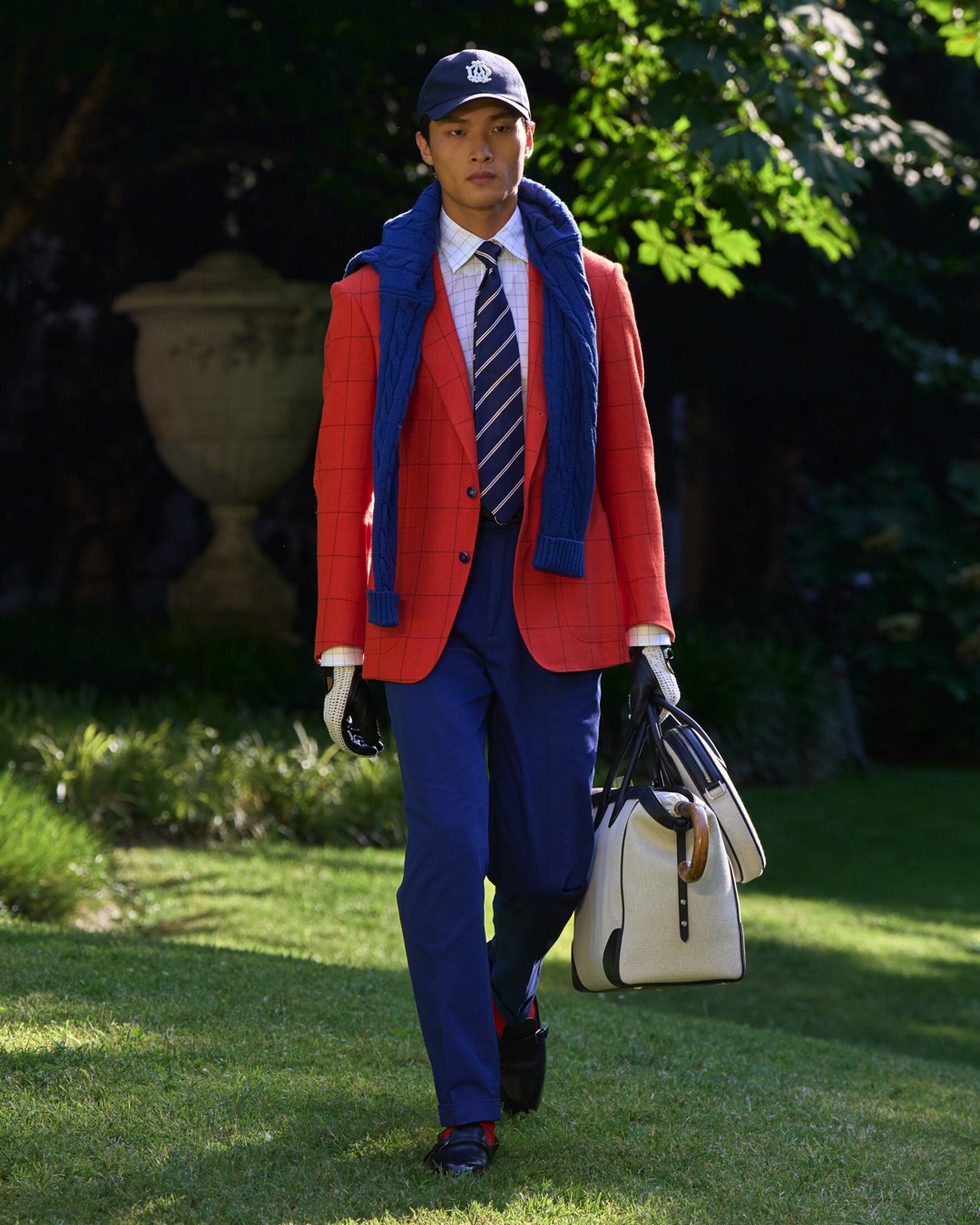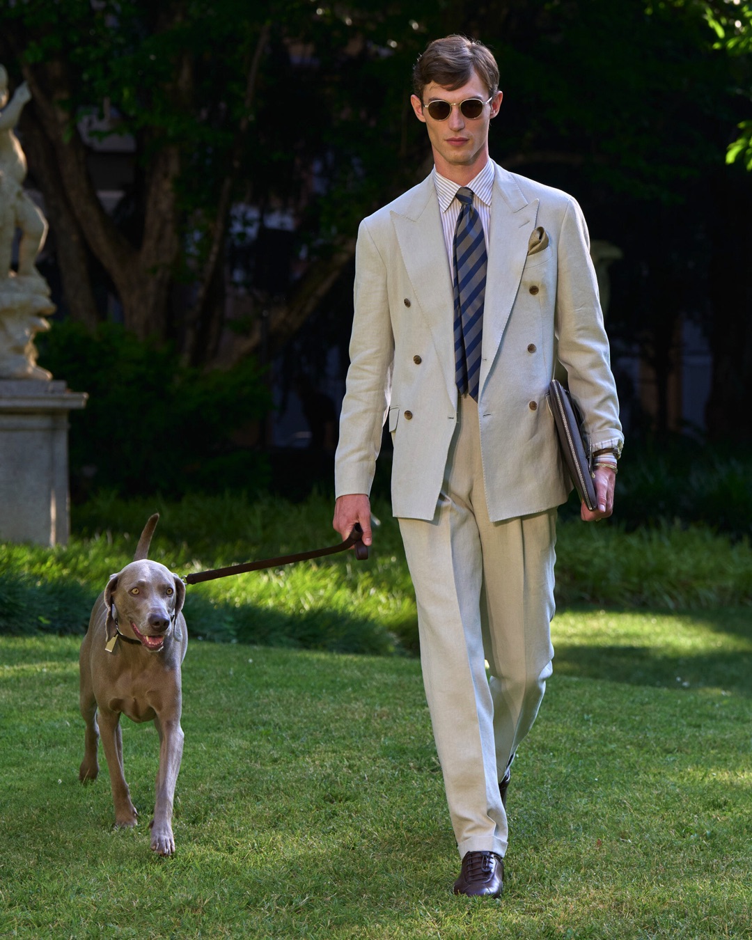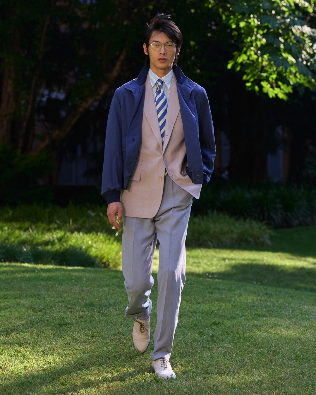 Key pieces include Glen check car coats lined in tattersall, bonded linen suits softened by sun-faded pastels, and haberdashery in irreverent gelato shades. English-milled fabrics – wool-linen blends, silk-cotton twills – are cut with precision and finished with hand-rolled seams and monogrammed cuffs. The Davies driving sneaker returns in supple suede, nodding to a rich motoring legacy.