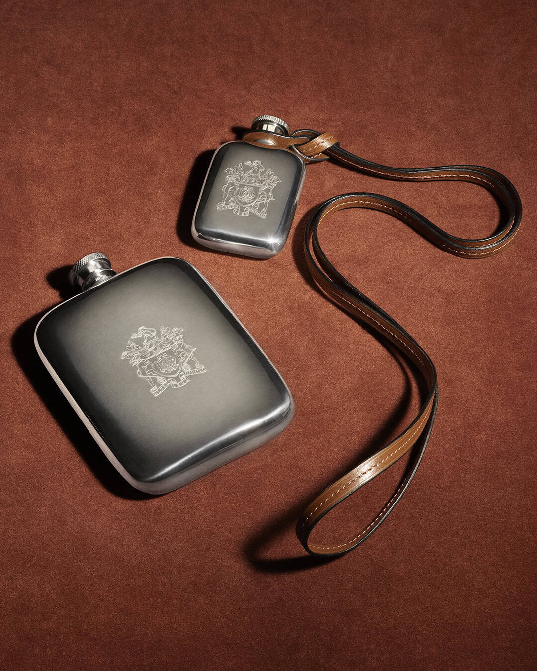 "You’ll always find the unusual at Alfred Dunhill” – a line from one of our archival gifting catalogues, and indeed, it remains true today. This exceptional libation vessel plays on the English heritage of the pocket flask, fashioned in traditional pewter, handmade in Sheffield, and trimmed with bridle leather – edge-painted by hand by our craftsperson. It features a bespoke armorial illustration by one of Britain’s last heraldic masters, whose commissions include the coronation itself and our very own Alfred Dunhill armorial.