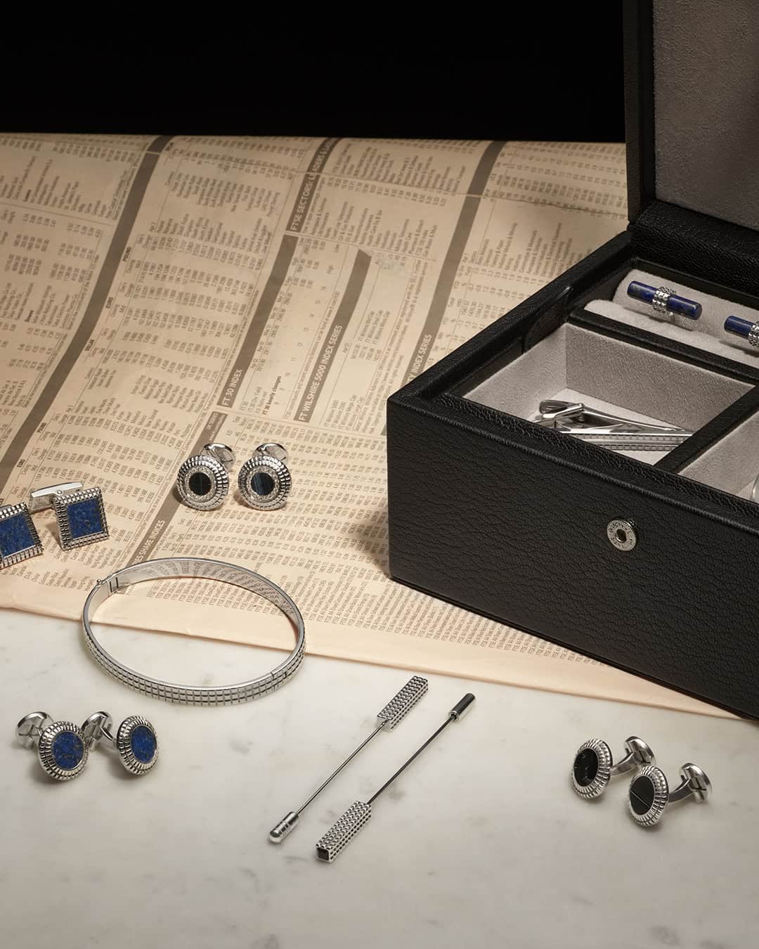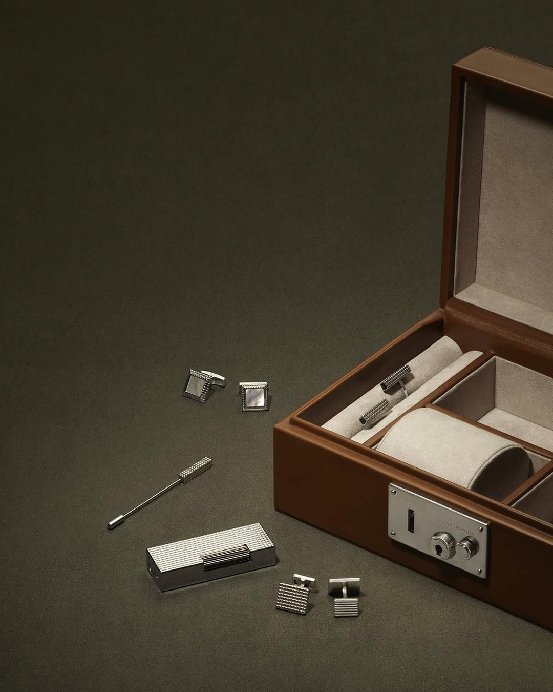 The finest possessions are not acquired, they are inherited – eventually. The AD cypher-embossed jewellery box, crafted in dunhill’s signature goatskin leather with three compartments, is purpose-built to house pieces destined for future generations: hobnail-patterned treasures in white gold and silver, mother-of-pearl, and onyx. Precious in every sense.