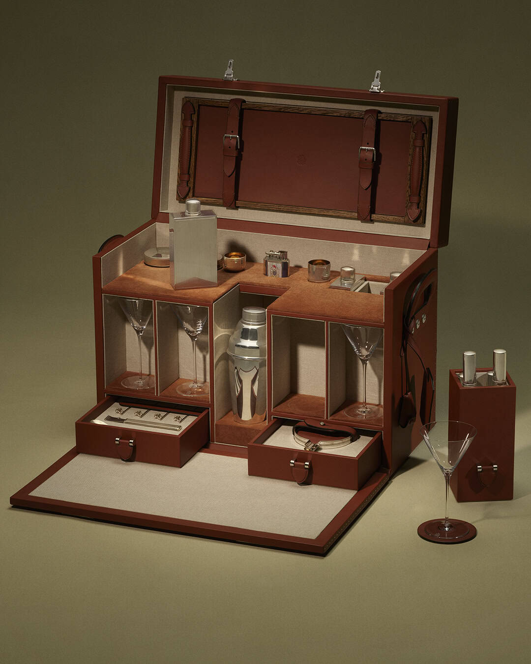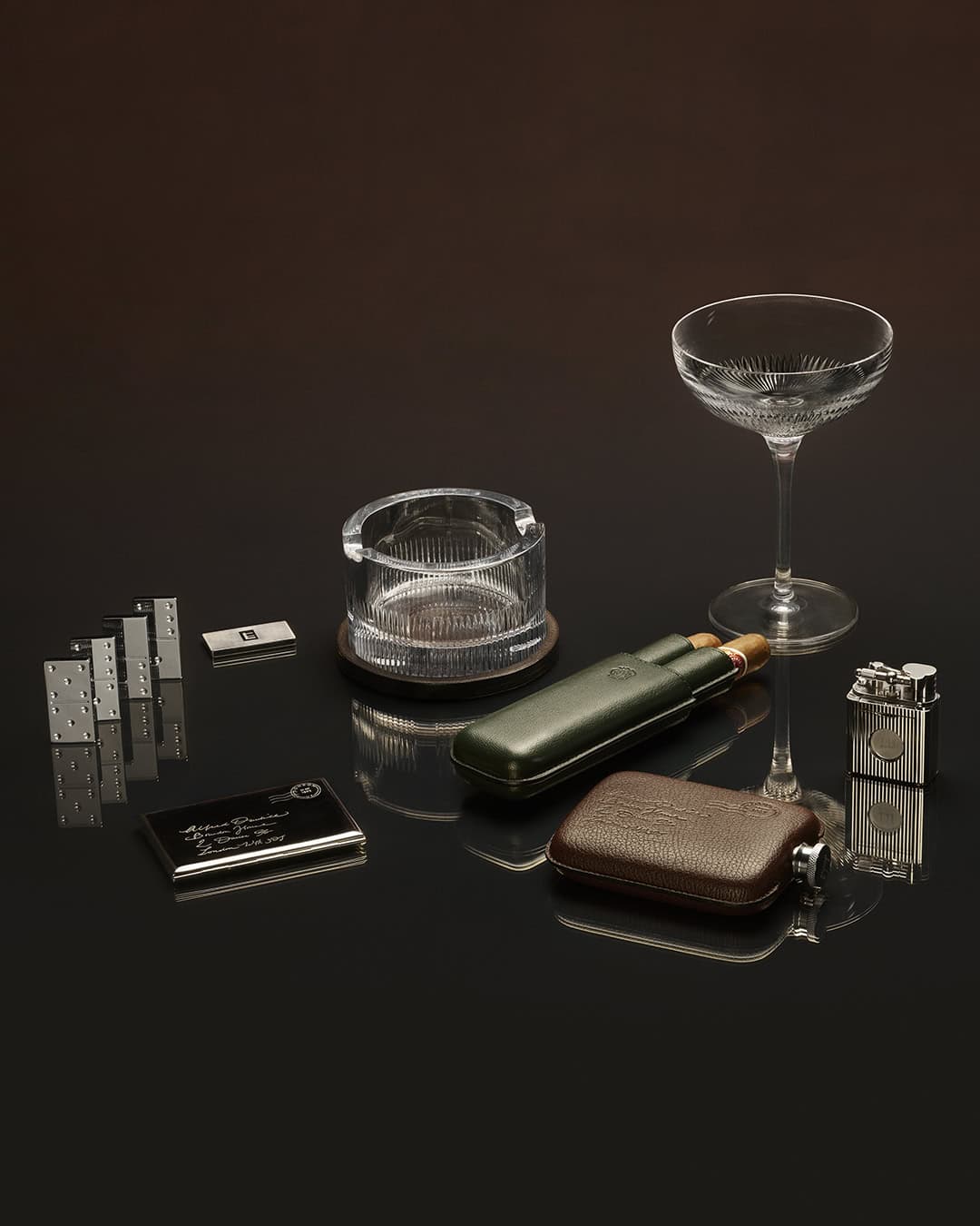 A leather-bound flask. A Goatskin Cigar Case. The Compendium Turbo Lighter. Together, they offer the implements of civilised indulgence. The lighter itself recalls the House’s legacy of functional design – a compact object that houses both flame and finely engineered cigar cutter, fittingly accompanied by a discreet, elegant ashtray, hand-cut in Ireland by a traditional crystal maker.