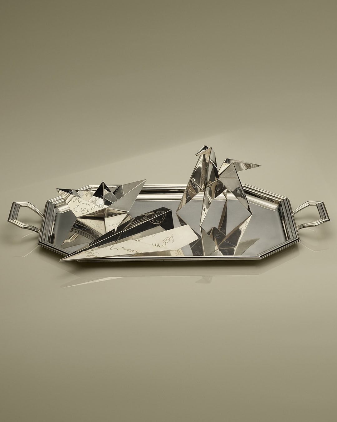 This season we return to the art of English silver box making, working with one of only four masters still dedicated to this craft. Once, our old Duke Street boutique was a destination for the curious and distinguished. Today, Bourdon House, built in 1723, continues that lineage, immortalised in expertly crafted and exquisitely playful mementos. From an origami horse to an aeroplane, each bear its Mayfair address with quiet pride.