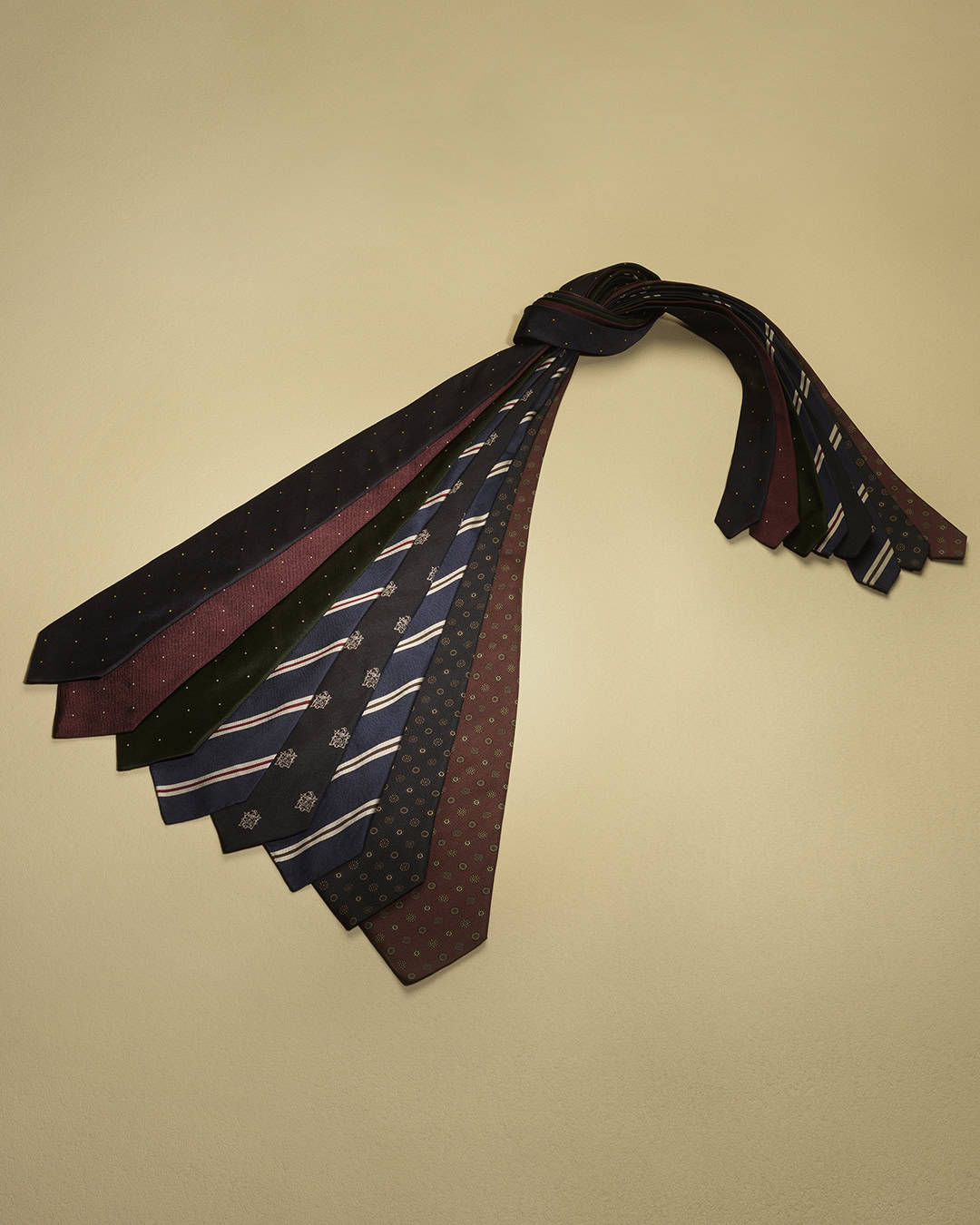 The modern gentleman ought never be short of a way to formalise a shirt or ignite a conversation. From a classic dunhill polka dot to a regimental stripe woven tie, our select curation includes the finest materials, such as silk and wool-silk blends, and traditional crafting techniques like British weaving. Cues of character designed to complement a wider wardrobe.