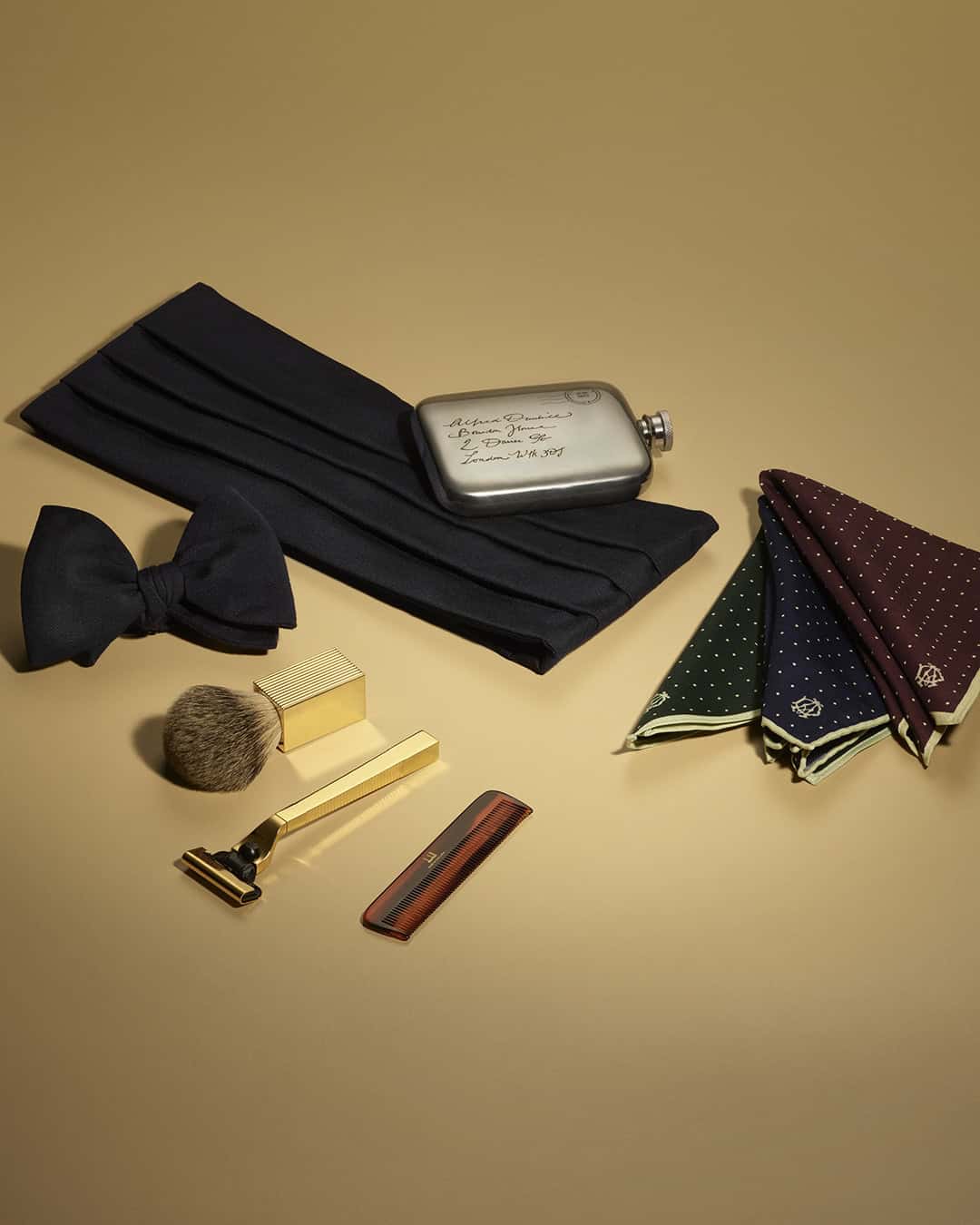 A gentleman is known by the things he keeps close, much like a fine comb crafted in Kent by one of the last English makers and sheathed in a leather case from our workshop in London. Whether it concerns ablutions or formal embellishment, personal effects (an Envelope flask crafted in pewter, perhaps, a gold-plated razor in a fine leather case, or a wool silk grosgrain cummerbund) ought always to be crafted with true meaning.